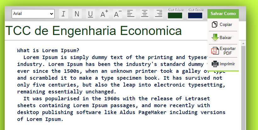 E nĂŁo para por aĂ! O World Text Editor ainda oferece a opção de exportar o documento em formato PDF, mantendo toda a formatação feita. Isso permite que vocĂȘ compartilhe seu trabalho de maneira profissional e pronta para impressĂŁo.