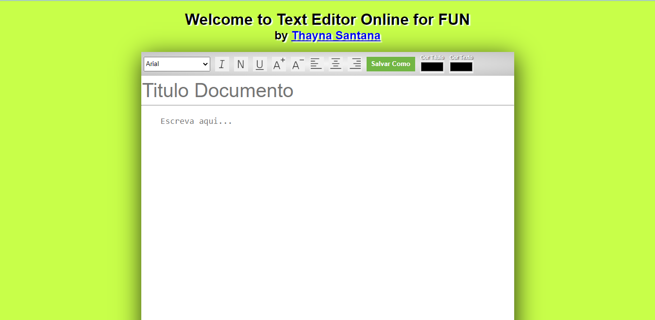 Com a combinação poderosa das tecnologias JavaScript, HTML e CSS, o World Text Editor oferece uma experiĂȘncia completa de edição de texto, com recursos avançados e uma interface amigĂĄvel. Descubra todo o potencial desse projeto e crie documentos incrĂveis de maneira rĂĄpida e fĂĄcil.